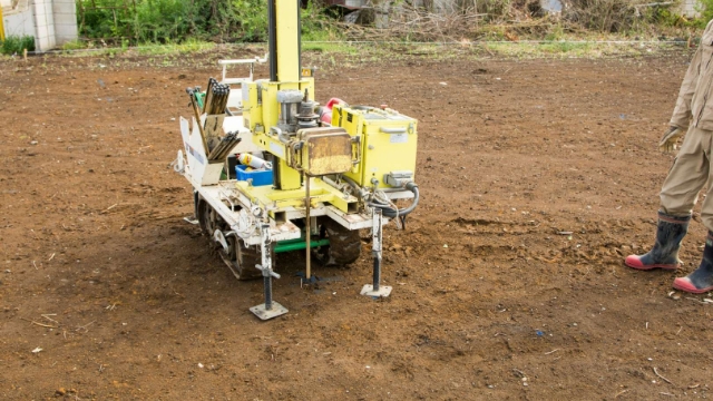 地盤の強さを調べるために、必ず地盤調査を行います。地盤がぜい弱だと判断されたときは、この調査に基づき地盤改良を行います。